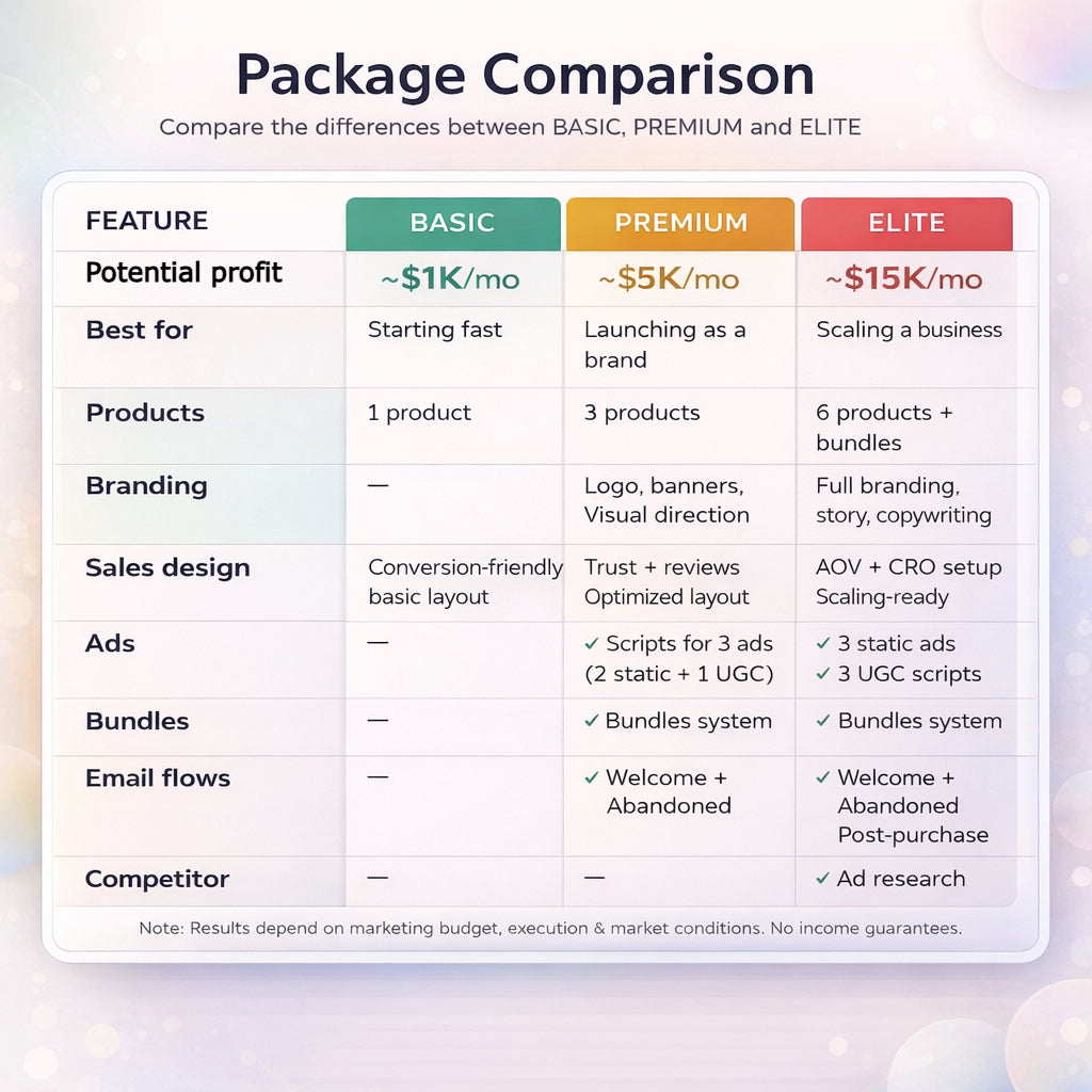 Our team selects a proven, high-potential product for you, fully configures your Shopify store, and connects it directly to a trusted supplier. This allows you to start immediately — with no technical knowledge and no complicated setup required.